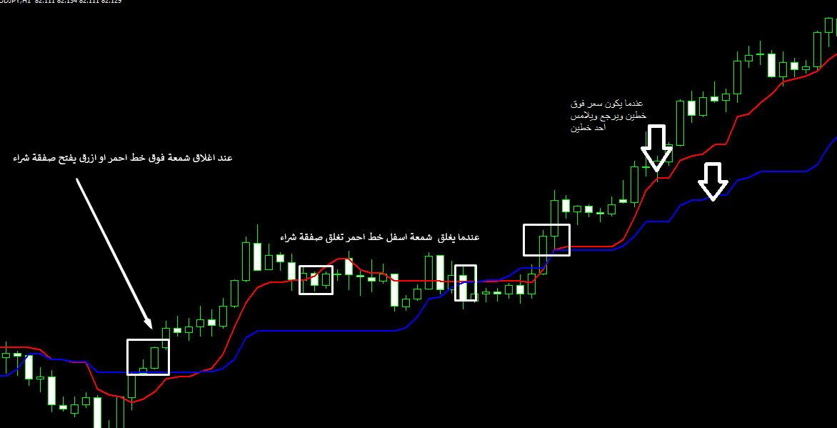 عندما تغلق شمعة فوق خط احمر او عندما تغلق فوق خط ازرق