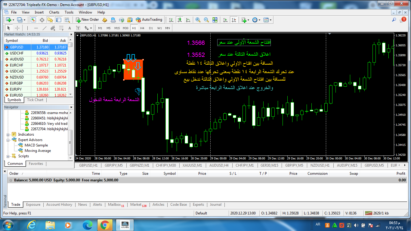 ولا يوجد هدف او وقف خسارة فقط يتم اغلاق الصفقة مع اغلاق الشمعة الرابعة مباشرة