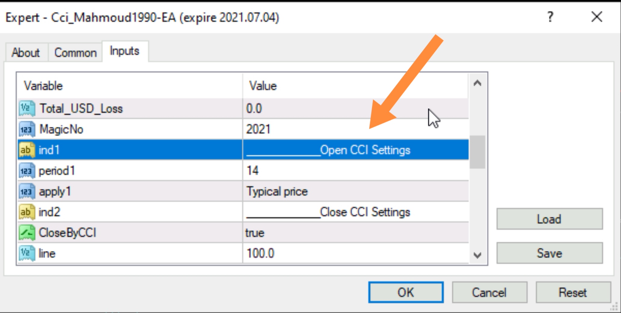 الاكسبيرت يعتمد على مؤشر "cci" في الدخول.