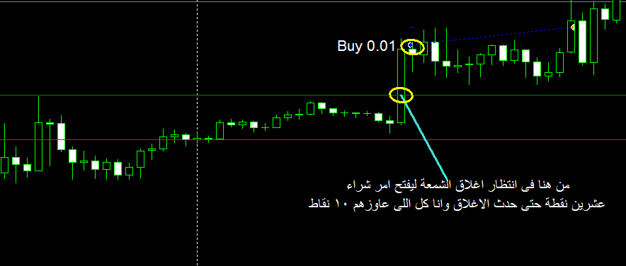 أولا : لاحظت ان الامر يُفعل بعد اغلاق شمعة الاختراق وهذه الشمعة ممكن تكون طويلة نسبيا كما موضح بالصور التالية فيفضل ألا ننتظر الاغلاق بل بعد اختراق السعر للمنطقة المحايدة بعشر نقط يفتح امر الشراء أو البيع