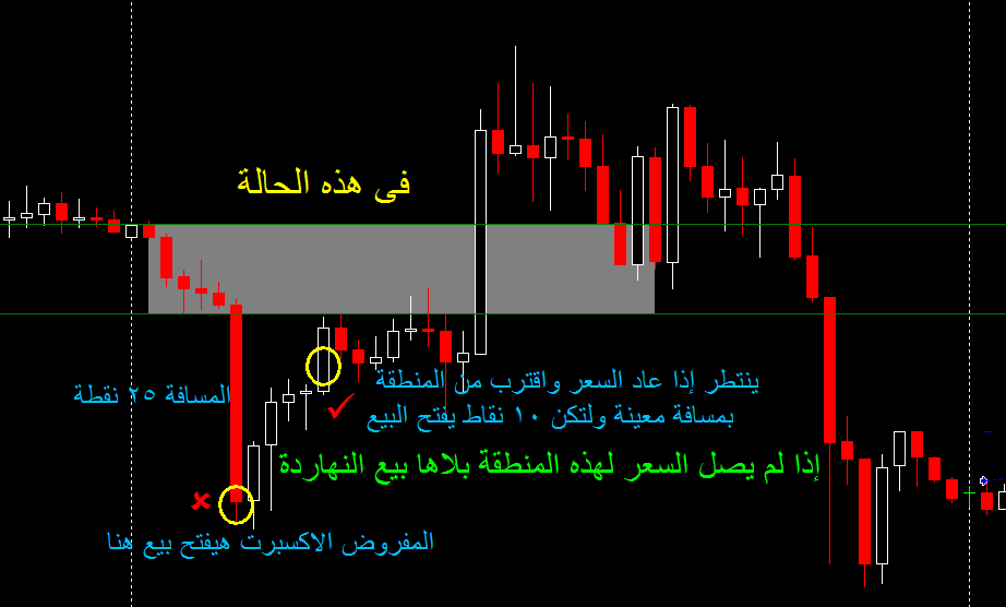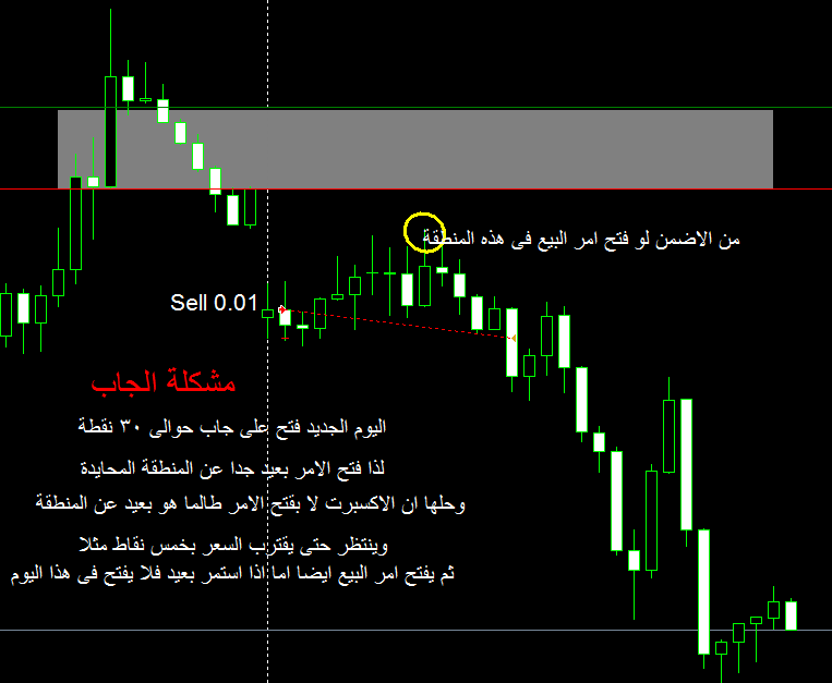 ثانياً : إذا حدث جاب يجب الانتظار حتى يقترب السعر من المنطقة المحايدة ليفتح الامر أو بلاها الصفقة دى من اصله