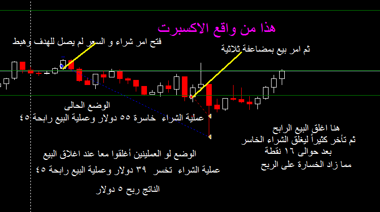 ثالثا: عندما لا يصل امر البيع مصلا الى الهدف ـ ثم يفعل امر شراء لاحظت ان امر الشراء (الرابح ) يغلق قبل امر البيع الخاسر ويستمر امر البيع لحين اغلاق الشمعة مما يأكل من الارباح رغم ان المفروض إما يغلق الامرين فى لحظة واحدة أو الامر الخاسر (البيع ) هو الذى يغلق اولا .