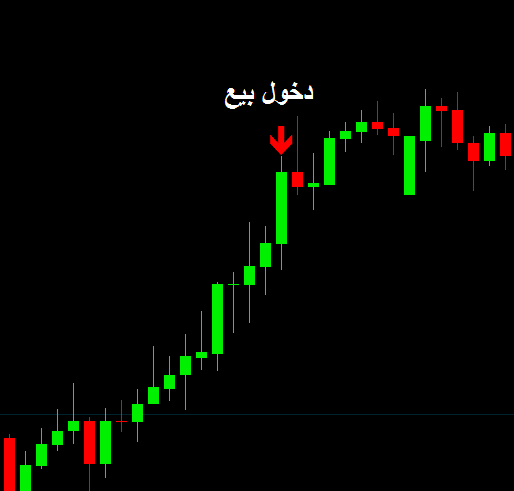 ( 10 شمعات متتالية صعود ) هنا تظهر اشاره بيع
