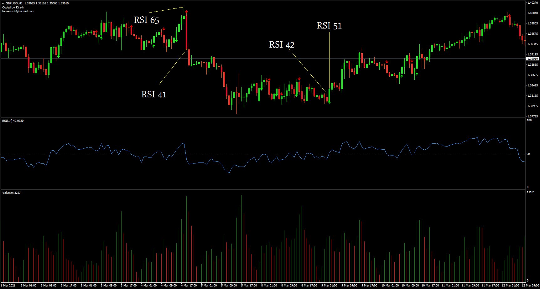 والشمعة على مستوى مؤشر rsi فوق مستوى ( 50)