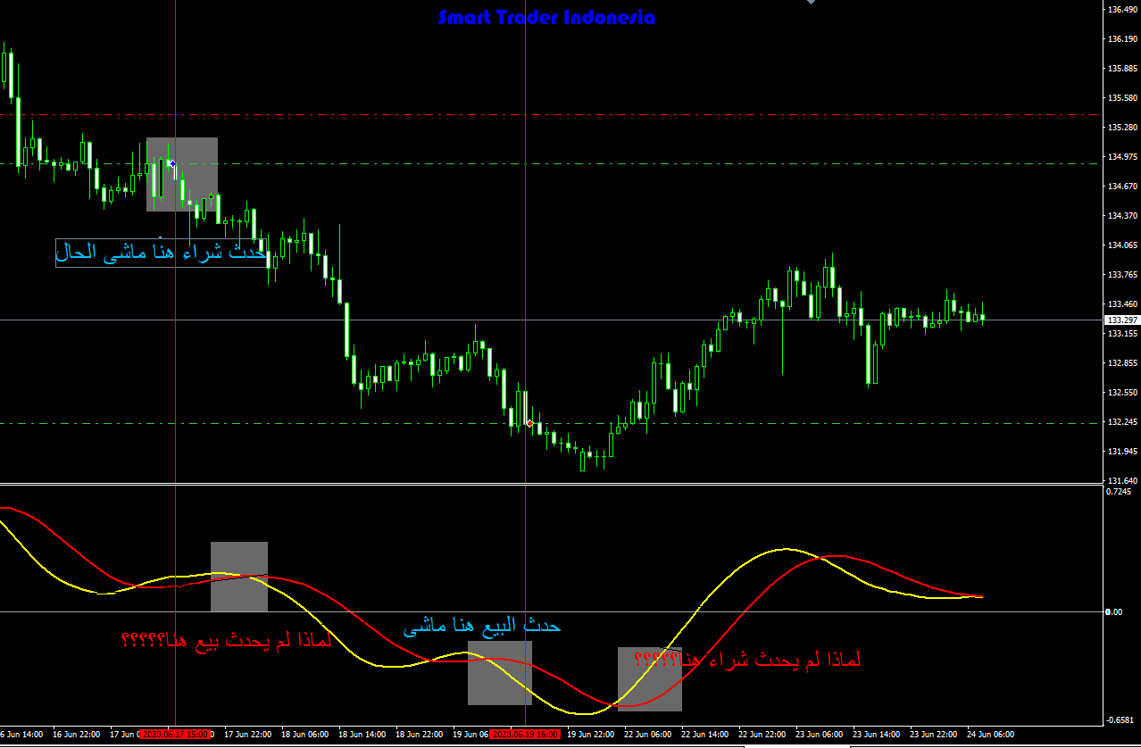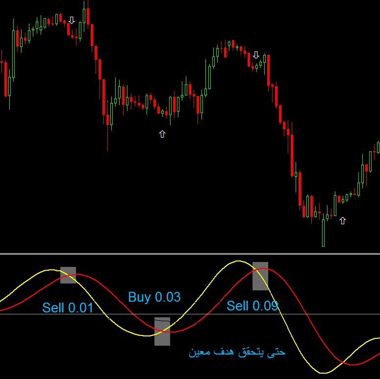 عزيزى ببساطة اريد اكسبرت مضاعفات يعمل مع تقاطعات مؤشر Ob-Os المرفق لحضرتك ولا علاقة لحضرتك بالاسهم التى ينتجها المؤشر اطلاقا - الشغل كله على الموفنجين بالنافذة السفلية