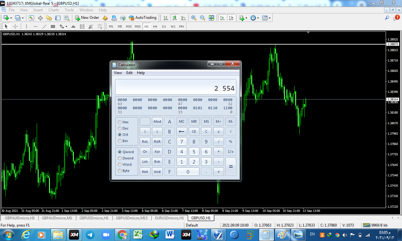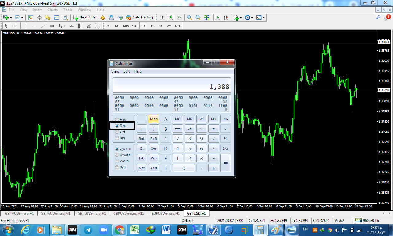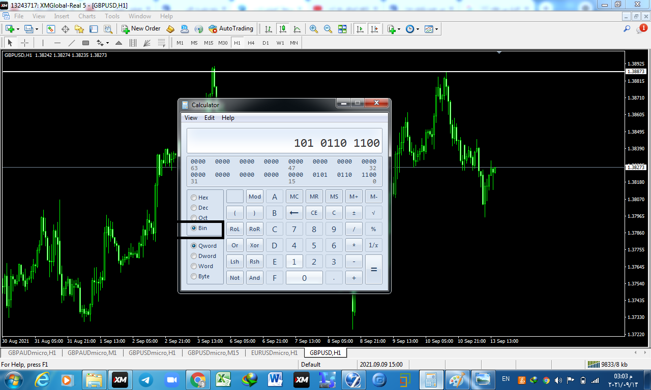 نذهب الى الحاسبة ثم الى view ثم الى programmer ثم نضع الرقم الذي لدينا على نظام العشري dec