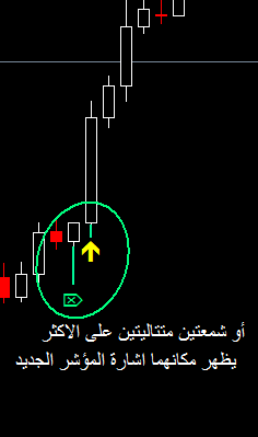 فى حالة ظهور المؤشرين معاً على شمعة واحدة أو احدهما على الشمعة التالية مباشرة للأخر