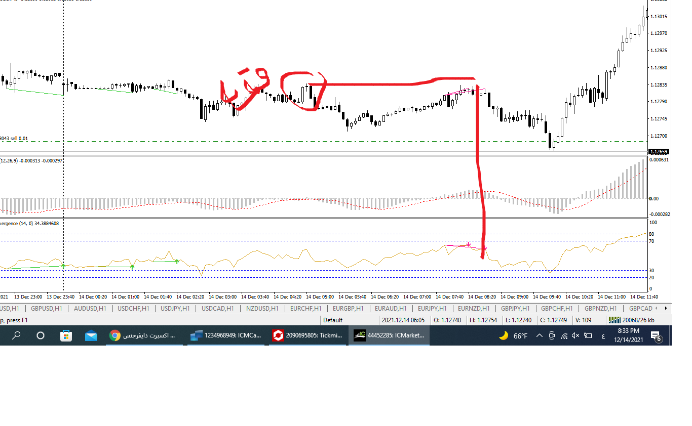 الاستراتيجيه تعتمد علي معطيات الدايفرجنس كما بالصوره مع تأكيد الاشارات عن طريق RSI, MACD ( كدخول وخروج ) - الهدف يكون تلقائي بناء علي صوره مع امكانيه تحديد الهدف كنقاط ايضا