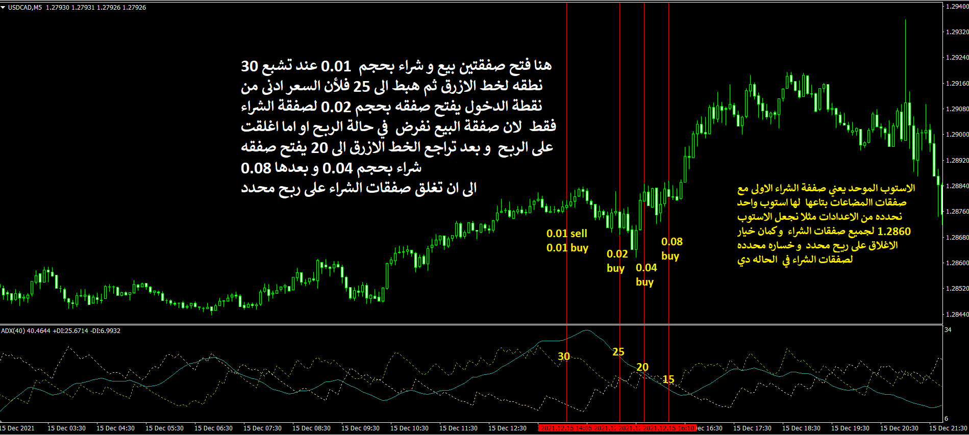 الفكرة غير بسيطة كما بالعنوان! وتبدو عشوائية، فالمرجو التوضيح اكثر من الشارت لنقاط الدخول اول بأول الى ان تغلق كل الصفقات