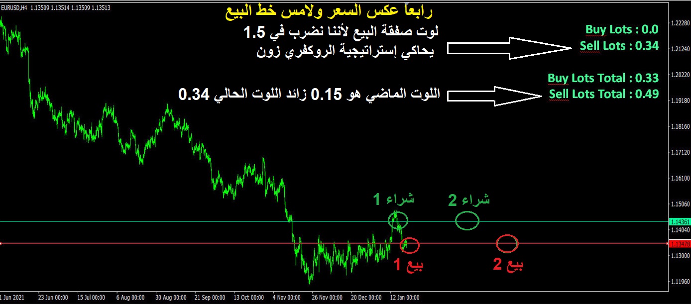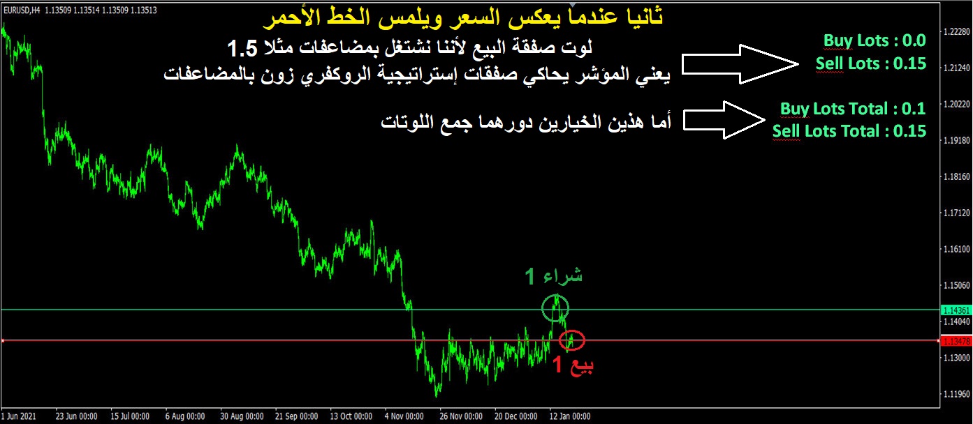 والخط الثاني سيكون على بعد مسافة ستيب من السعر الحالي والتي ستفتح عنده صفقات البيع فقط عند عكس السعر