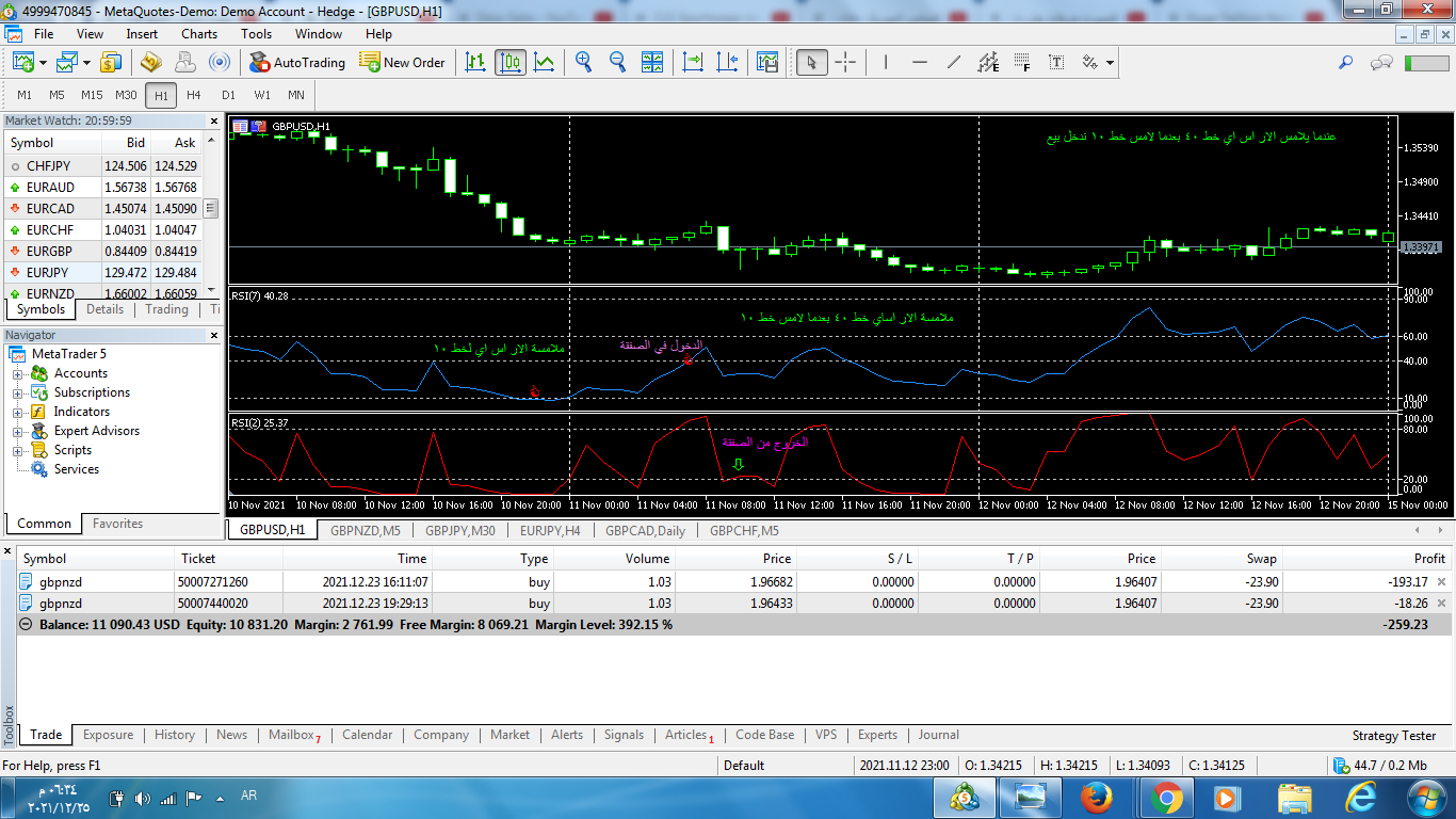 يتم الدخول مباشرة بيع ويكون الخروج عند ملامسة الار اس اي الصغير