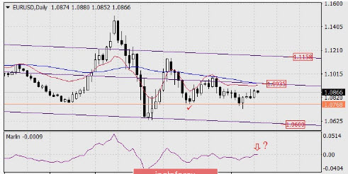اليورو/الدولار رد فعل اليورو بشكل غير محسوس على القرار المحايد لمجلس الاحتياطي الفيدرالي بشأن السياسة النقدية يوم الأربعاء. ولم يتم التغلب على القمة المسجلة يوم الثلاثاء، ولكن اليورو ينخفض صباح اليوم. ولامس خط إشارة مؤشر مارلين حدود منطقة النمو وأظهر تحولا هبوطيا منها على الرسم البياني اليومي. قد لا يتم الوصول إلى النقطة المغناطيسية التي شكلها تقاطع خط الماكد والقناة السعرية عند 1.0935.