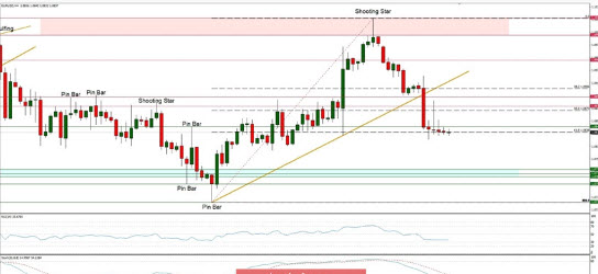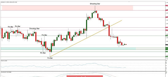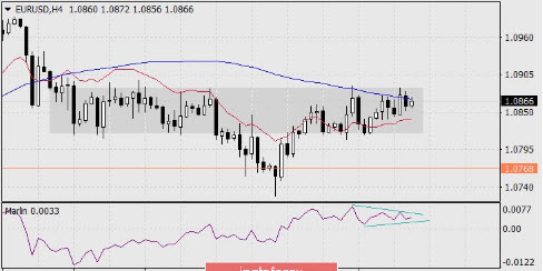 والشرط لبدء الانخفاض على المدى المتوسط لليورو هو أن ينخفض السعر إلى ما دون القاع المسجل في 6 أبريل (1.0768). فشل السعر مرة أخرى في التغلب على مقاومة خط الماكد على الرسم البياني لأربع ساعات، حيث بقي في نطاق التراكم في النصف الثاني من أبريل. وشكل خط إشارة مؤشر مارلين مثلثًا صغيرًا، وسيعزز الانخفاض منه هبوط المؤشر والسعر.