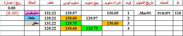 أثناء فترة آسيا -- أصابت هدفها عند شراء 8 لوت و أتت بربح حرزان