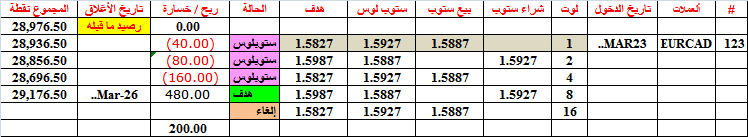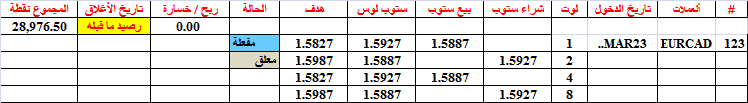أغلقناها عند 1.2306 --قبل هدف البيع 4 لوت ب 6 نقاط