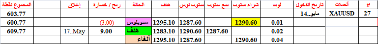 حقق الذهب (صفقة 27)هدفه عند بيع 0.02 لوت