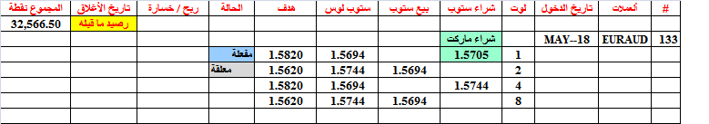 حققت الصفقة 126 هدفها عند بيع 2 لوت--و أغلقت على هذا الربح