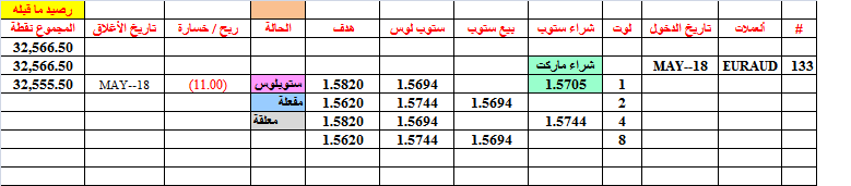 قررنا ان نغلق الصفقة قبل الوصول الى الهدف و لكن على ربح قليل نظرا اننا في المضاعفة 16