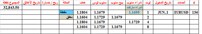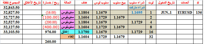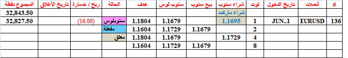 حالة الصفقة 136 (يورو ) شراء 16 لوت