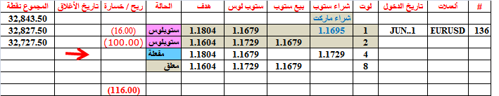eurusd -- أصابت الصفقة 127 هدفها عند بيع 2 لوت