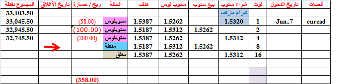 لأنمن خبرتي استخلصت ان الأرداد من خط الهدف بنقطة او ثلاث يخلق تذبذبا و تضاعفا متكررا --و هذا ما حصل معنا في هذه الصفقة
