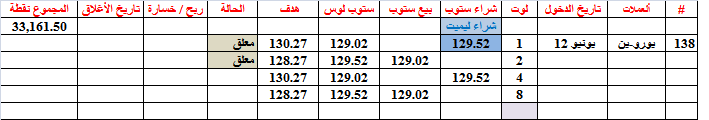 بالنسبة للصفقة 129-- لم تتفعل بعد --و لكن السعر اقترب من نقطة الدخول ثم تراجع عنها