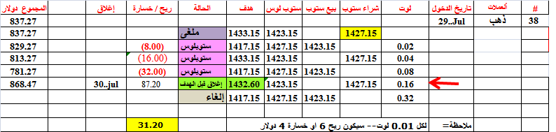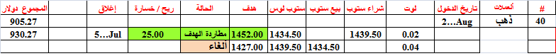 أغلقنا الصفقة 39 --ذهب-- عند السعر 1432.60 اي قبل الهدف ببضع نقاط