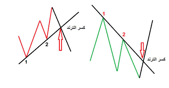 وكيف ارسم ترند على اخر قمتين وقاعين