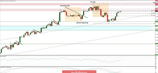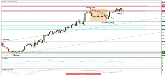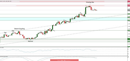 توقعات السوق الفنية: وصل زوج اليورو/الدولار إلى منطقة المقاومة الفنية الواقعة بين المستويين 1.1347 - 1.1361 وشكل نموذج شمعة الشهاب. وقد تكون هذه إشارة على حدوث تراجع محتمل أو حتى تصحيح نحو مستوى 1.1236 أو مستوى 1.1190. ولا يزال الدعم الفني الرئيسي القصير الأجل عند مستوى 1.1148. ويرجى ملاحظة أن السوق قد بدأ في الخروج من ظروف ذروة الشراء، وبالتالي فإن احتمالات التحرك لأسفل مرتفعة الآن. نقاط البايفوت الأسبوعية: المقاومة الأسبوعية3 - 1.1696 المقاومة الأسبوعية2 - 1.1546 المقاومة الأسبوعية1 - 1.1432 البايفوت الأسبوعي - 1.1266 الدعم الأسبوعي1 - 1.1137 الدعم الأسبوعي2 - 1.0969 الدعم الأسبوعي3 - 1.0859 توصيات التداول: الترند الرئيسي الطويل الأجل في زوج اليورو/الدولار هابط، ولكن يستمر الترند الصعودي المحلي. ويتواجد الدعم الفني الرئيسي الطويل الأجل عند مستوى 1.0336 وتتواجد المقاومة الفنية الرئيسية الطويلة الأجل عند مستوى 1.1540. وفقط إذا تم اختراق أحد هذه المستويات بوضوح فقد ينعكس الترند الرئيسي (1.1540) أو يتسارع (1.0336).