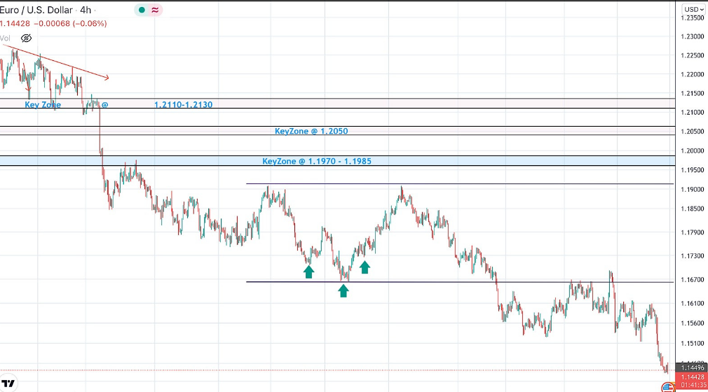 الثبات الهبوطي تحت منطقة السعر 1.2050-1.2000 سمح بإنشاء الاتجاه الهبوطي الأخير. لذلك ، عبر زوج اليورو مقابل الدولار الأميركي عن انخفاض كبير بينما وقف مستوى السعر 1.1650 كمستوى طلب بارز منع المزيد من الانخفاض. الضغط الصاعد الذي نشأ حول 1.1650 فشل في الدفع أعلى من مستوى 1.1900. ولهذا السبب ، تم تنفيذ تراجع هبوطي آخر باتجاه 1.1650. كانت الإشارات الصعودية متوقعة حول مستويات الأسعار من 1.1650 إلى 1.1700 لأنها تتوافق مع القاع السابق الأخير. مع ذلك ، دفع الانخفاض الواسع زوج اليورو مقابل الدولار الأميركي نحو 1.1600 وكان على وشك الوصول إلى المستويات الأدنى إذا تم الحفاظ على زخم هبوطي كافٍ. علاوة على ذلك ، نشأ انتعاش صعودي كبير مؤخرًا عند اختبار مستوى السعر 1.1570. كان من المتوقع أن يقدم التراجع الصعودي الأخير نحو 1.1650-1.1680 رفضًا هبوطيًا ودخول بيع صالحًا. أدى الانخفاض الكبير بزوج اليورو مقابل الدولار الأميركي مرة أخرى نحو مستويات 1.1550 والتي كانت بمثابة منطقة دعم خلال اليوم. ومن ثم ، ظهرت حركة جانبية حتى حدث انخفاض باتجاه 1.140. يرجى ملاحظة أن أي حركة صعودية فوق 1.1680 يجب اعتبارها بمثابة إشارة خروج مبكرة لتعويض أي صفقات بيع.