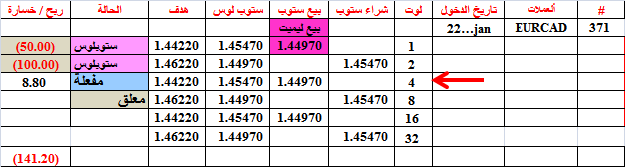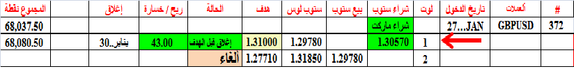 شراء ماركت 1.3057--- ثم إتبع الجدول