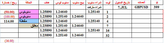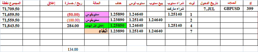 أغلقنا الصفقة 399 عند 1.2585 قبل الهدف بقليل بعد شراء 4 لوت