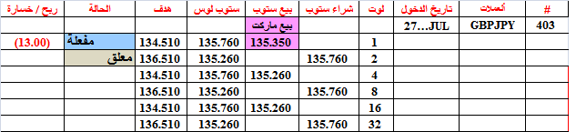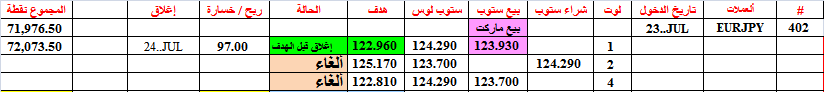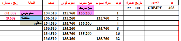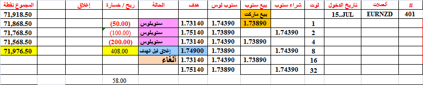 نكون بذلك قد اغلقنا صفقة المضاعفات و دخلنا في صفقة جديدة تعزيز