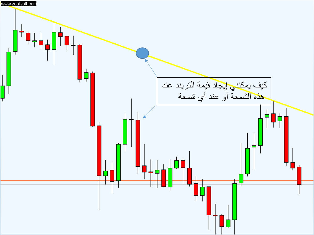 ماهو السطر الامر البرمجي اللذي يمكنني من معرفة قيمة التريند عند كل شمعة