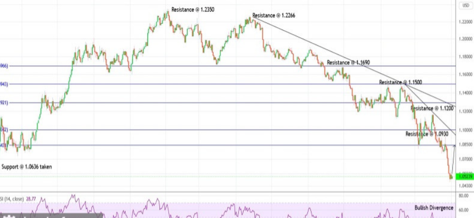 التحليل الفني لزوج اليورو/الدولار الأمريكي للأسبوع الممتد من 18 إلى 23 أبريل 2022