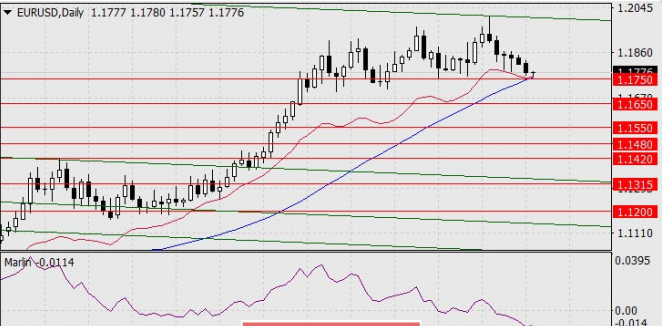 اليورو/الدولار انخفض اليورو بمقدار 37 نقطة يوم الثلاثاء، ولا يزال مترددًا في اتخاذ إجراء حاسم، كما هو الحال مع الجنيه، أو على الأقل مع الدولار الأسترالي. وقد لا يزال المستثمرون يأملون في تلقي رسائل إيجابية من البنك المركزي الأوروبي يوم الخميس، ولكن البنك المركزي الأوروبي لن يسارع إلى دق ناقوس الخطر بشأن خروج بريطانيا من الاتحاد الأوروبي، والضغط السلبي من المملكة المتحدة يتزايد كل يوم. ولكن من الناحية الفنية، سيتعين على سعر اليورو التعامل مع دعم خط الماكد على الرسم البياني اليومي، وهذا هو المستوى 1.1750. وانخفاض السعر في المنطقة تحته يفتح الهدف الأول عند 1.1650. والاحتمال المتوسط الأجل لانخفاض 1.1315 هو دعم لخط القناة السعرية المضمن. وهو موضح باللون الأخضر على الرسم البياني. ومع أخذ مرونة اليورو في الاعتبار للاضطرابات السياسية الحالية، نفترض أن السعر سوف يتحرك من جانب إلى آخر حتى اجتماع البنك المركزي الأوروبي غدًا. يقوم السعر بتصحيح طفيف من المستوى الرئيسي 1.1750 على الرسم البياني لأربع ساعات. وليس مؤشر مارلين الرائد في عجلة من أمره للانخفاض، الأمر الذي قد يعمل أيضًا لصالح اليورو في رغبته في إلقاء نظرة فاحصة على الوضع الخارجي وتوضيح نوايا البنك المركزي. والحد العلوي لنطاق الانتظار يحدده خط الماكد - المستوى 1.1855.