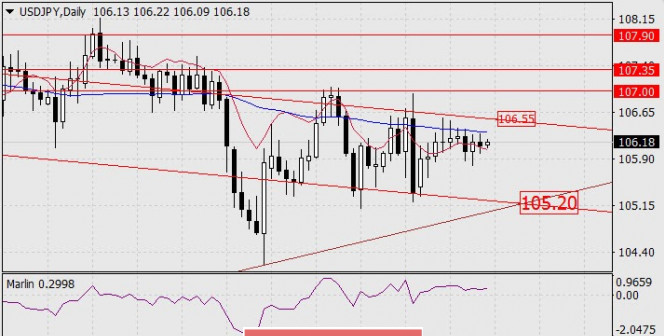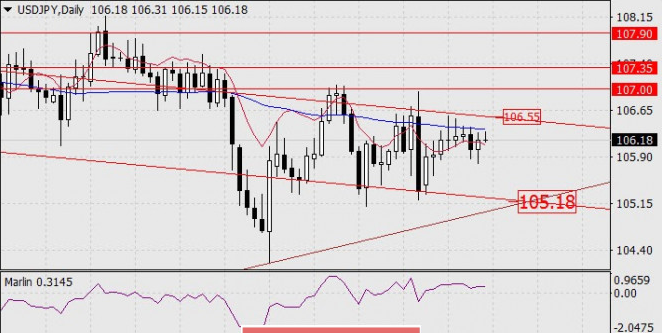 يستمر التصحيح في سوق الأسهم الأمريكية. وانخفض مؤشر ستاندرد آند بورز500 بنسبة 1.76٪ يوم أمس، مما منع الين من النمو نحو الهدف المخطط له منذ فترة طويلة وهو 106.55. وانخفض السعر قليلاً، وبقي فوق خط مؤشر التوازن (الرسم البياني اليومي)، حيث يواصل اختيار المزاج الصعودي على الرغم من التغيرات السريعة في الأسواق الخارجية. ويظل مؤشر مارلين في منطقة النمو، والهدف 106.55 ذو صلة، بعد أن يخترق السعر المنطقة فوقه، من المرجح أن يرتفع السعر إلى 107.00. كان خط مؤشر الماكد بمثابة دعم جيد للسعر على الرسم البياني لأربع ساعات. ونرى نموًا معتدلاً في الجلسة الآسيوية اليوم، بينما اخترق مؤشر مارلين منطقة النمو. تساعد سوق الأسهم اليابانية إلى حد ما زوج الدولار الأمريكي/الين الياباني على النمو. على الرغم من انهيار السوق الأمريكية يوم أمس، إلا أن المؤشرات الرئيسية لمنطقة آسيا والمحيط الهادئ تظهر نموًا اليوم.
