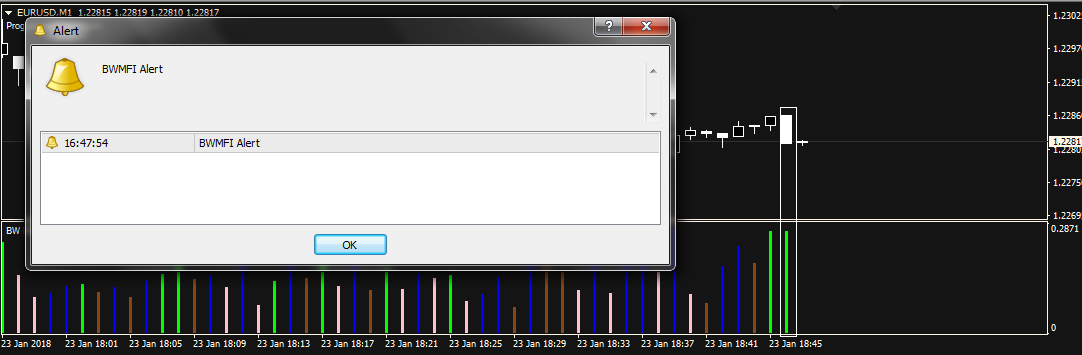بخصوص المؤشر يبدوا انه يعطي تنبيه في الشمعات التي توفرت فيها الشروط اي المؤشر لونه اخضر والشمعة هابطة ويعطي تنبيه حتى لو لم يغلق الشمعة على هذه الحالة