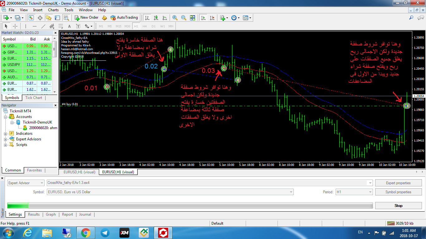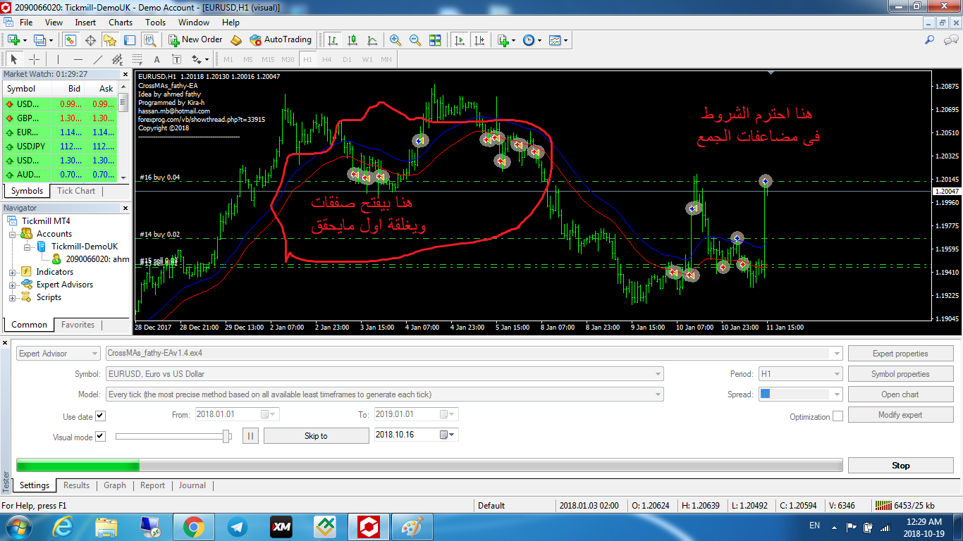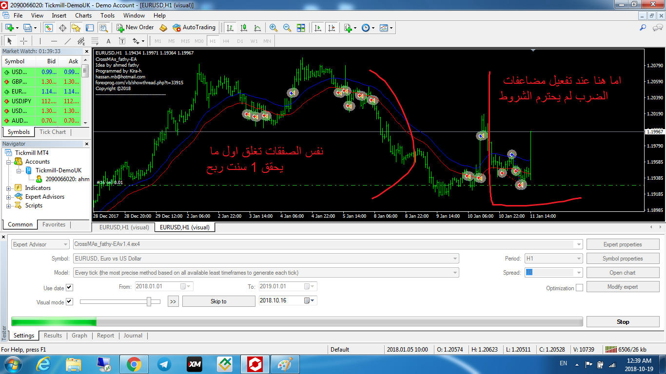 بعد التجربة اتضح انة يغلق الصفقات الاولى عندما يحقق ربح عائم وليس عند توافر شروط صفقة جديدة المفترض يكون اغلاق جميع صفقات المضاعفة فى وقت واحد وهو عند توافر شروط الاغلاق وفتح صفقة جديدة ولا تنسانا فى الاغلاق بالدولار ان امكن الغاء التيك بورفت والستوب لوز والتريلنج استوب ولك جزيل الشكر على مجهودكملف مرفق 9757