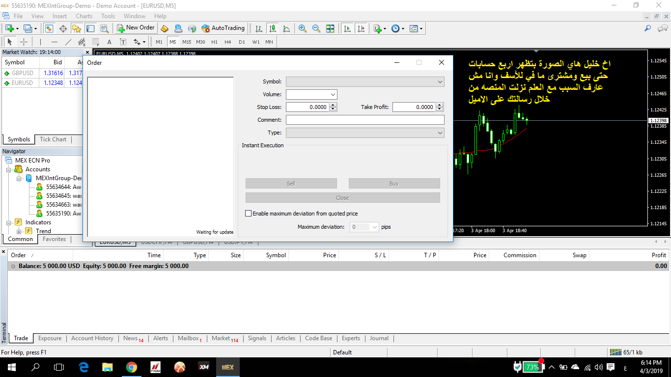 جرب نفس الزوج مع ecn و يمكنك مراسلتي وكتابة رقم الحساب وكلمة المرور لأجرب بنفسي