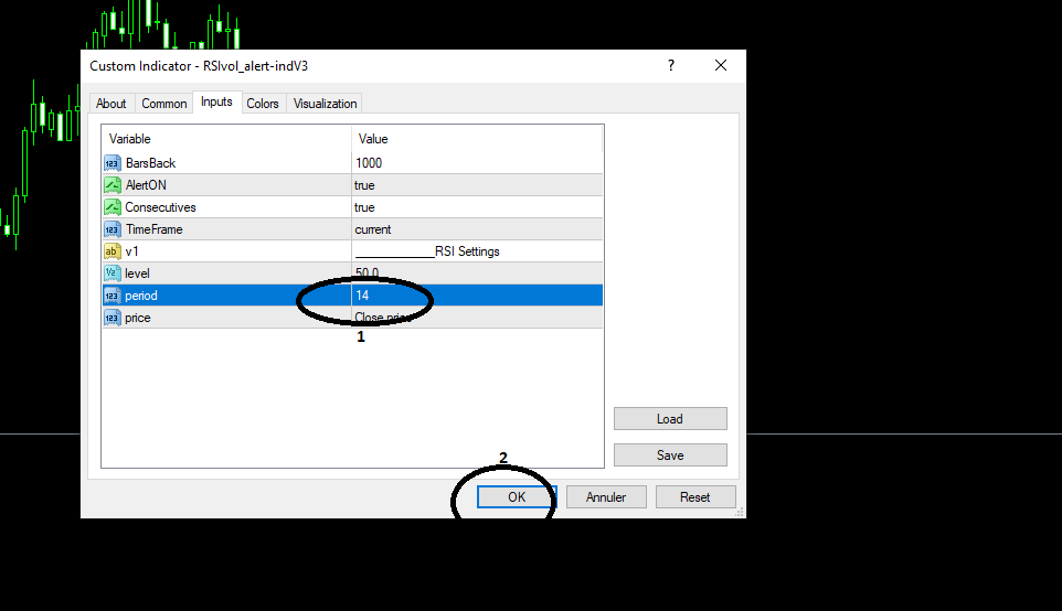بسيطة افتح الاعدادات (او عند وضع المؤشر على الشارت) غير ما تشاء بالاعدادات ثم Ok