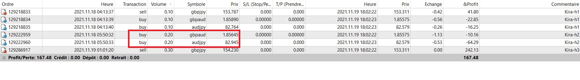 لاحظ الصفقات المغلقة تلك هي الصفقتين التي لا يجب غلقها