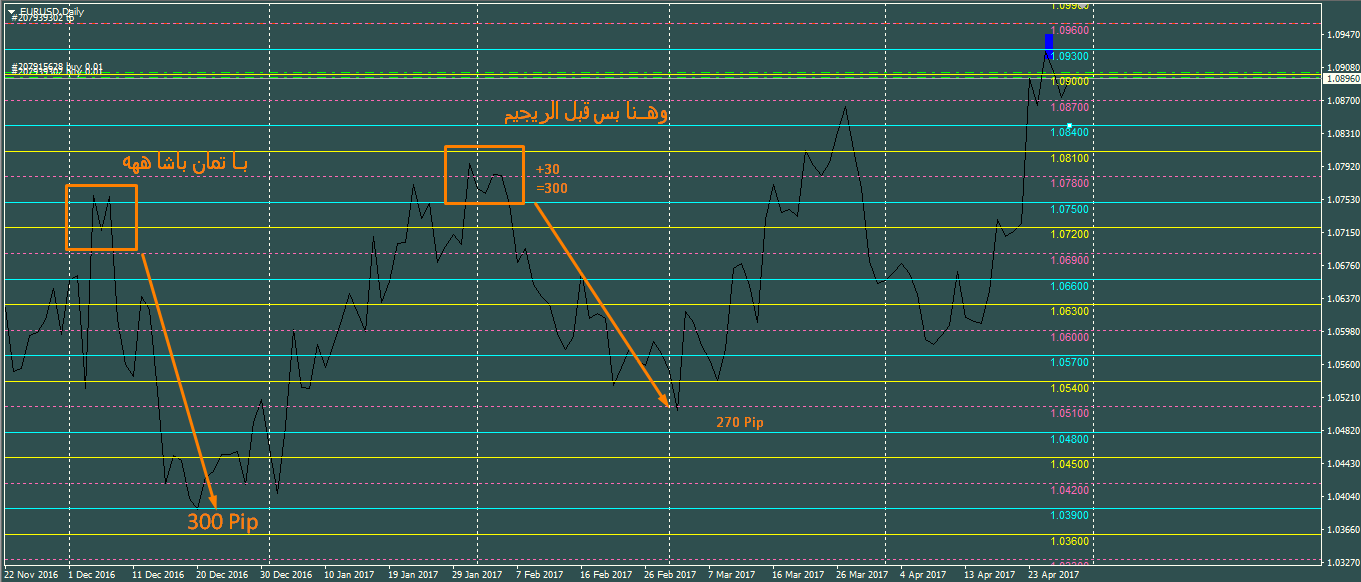عند الرقم 1.069 ( طيب ليه ماسحبت حساب النقاط من تحت من عند الرقم 1066 وتصل 300 نقطة عند 1.096) ماينفع لأن الرقم 1.069 عكس السعر لأعلى وهذا يتضح جليا لما تحط الشتارت على فريم اكبر مثلا الساعه