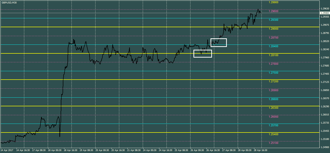 بمعني ان السعر ارتد من 1.2840 و 1.2810 يوم 26 ابريل و يوم 27 ابريل