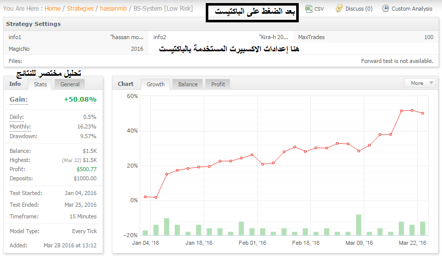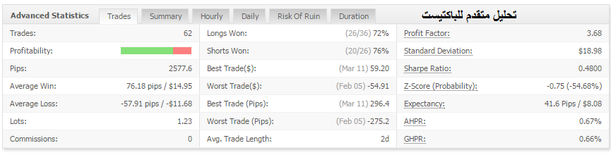 لكن الموقع يعطيك تحليل افضل للباكتيست