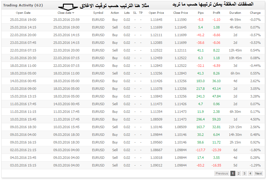 تقريبا نفس احصائيات الميتاتريدر4 من عدد الصفقات والربح المحقق والهيستوري...، كافية لحساب خسائر السبريد
