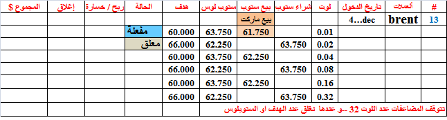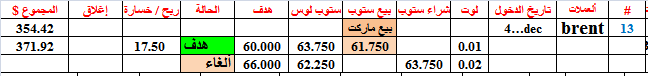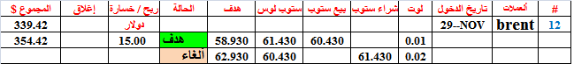 أصابت صفقة البرنت 12 هدف بيع 0.01لوت و أعطت 15$ ربحا