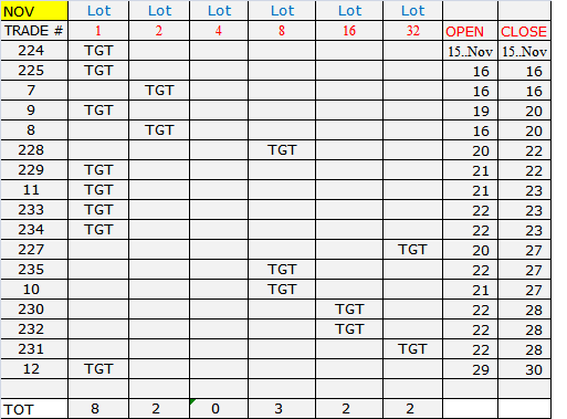 جدول يظهر لنا من 15 نوفمبر الى 30نوفمبر=