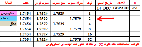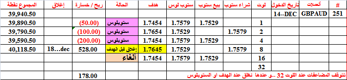 أغلقنا الصفقة 251 قبل الهدف بقليل اي عند 1.7645 و على 8 لوتات
