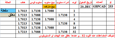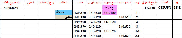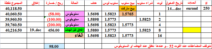 جدول الصفقة 17--- خسارة 5 او ربح 7.50 دولار لكل 0.01 لوت